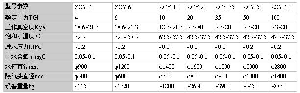 型号表示方法 ZCY—50T/H | |-----处理水量50T/H |----------真空除氧器